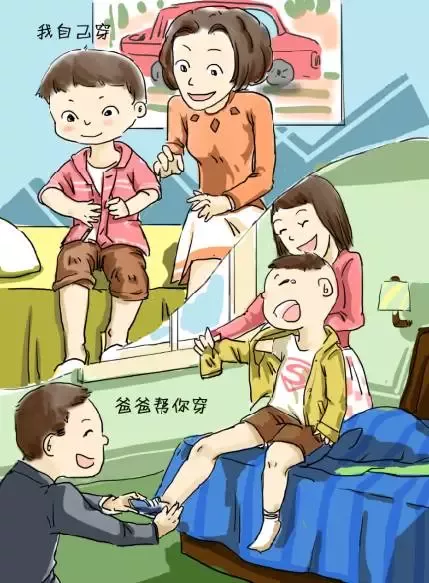别小看孩子自己系鞋带、穿衣服、盛饭、洗碗这些点滴小事,别忽略孩子每一次伸出的小手,那是孩子内心渴望成长的信号。给予孩子自己动手的机会吧!
