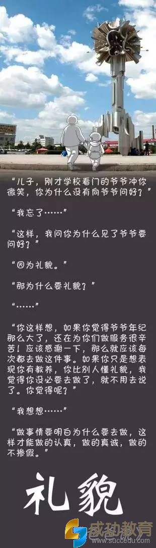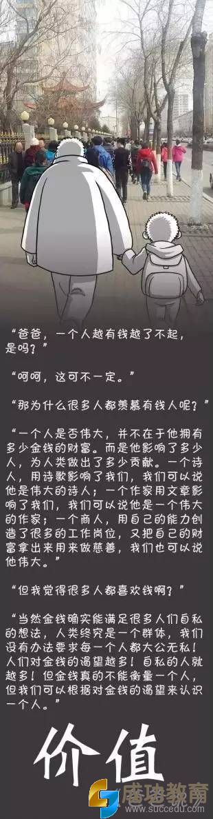 “爸爸,为什么很多人都不等红灯结束就走呢?” “爸爸,班里同学说家里做家务父母应该给钱。” “爸爸,你说我长大后会有出息吗?” …… 最近,一组父子对话形式的漫画火爆网络,画中机智爸爸回答儿子疑问的方式,并不是灌输教育,而是以浅显易懂的方式传递出正确价值观,让人不禁大呼:“这才是回答孩子问题的正