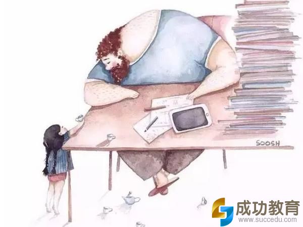 爸爸非常忙,可是他愿意低下头听女儿说话。