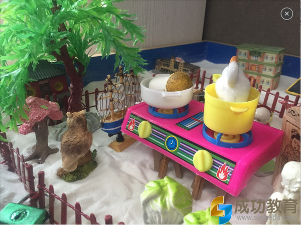 沙盘边缘的分别是散步的骆驼、牛还有猪,他说都是他家养的动物,不需要有人看管,他们也不会走丢,时间到了他们就会自己回来。孩子也偶尔抱怨爸妈从来没有接送过他上学,像他摆放的动物,他也是散养长大的孩子。