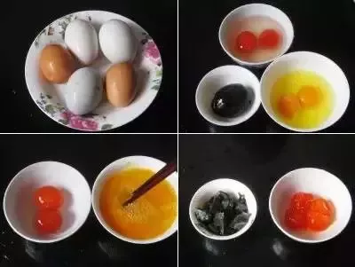 主料:咸鸭蛋2个、鸡蛋2个、皮蛋1个