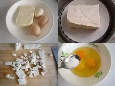 原料:豆腐大约200克,鸡蛋3枚。