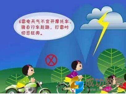 雷雨中最好不要奔跑,更不适宜开摩托车、骑自行车,在雷雨中快速移动容易遭雷击;