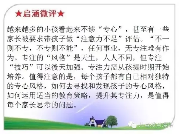 欢迎关注【微信公众号——儿童教育漫话:child_cn】,更多科学儿童教育知识与您分享。独创FDSP立体评估体系!关注个体差异,聚焦成长环境,提升学习能力和学习效果。