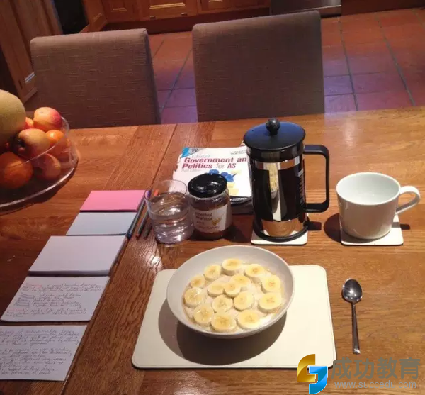 “我在晨起学习时有一条金规玉律:严格划分每天日程,当然也会考虑,需要什么时候学习什么课题。我最高效的学习时间是在早上或者下午。晚上我没那么容易集中注意力。有时我也去找朋友和他们一起完成作业。但是我独自一人时效率会更高。”