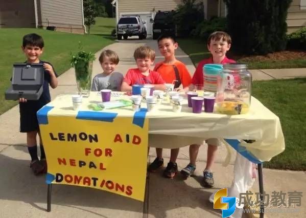 记得去年尼泊尔大地震,憨憨学校里的学生们就举办了一次柠檬水义卖活动,1美元1杯柠檬水,把募捐来的钱都捐给尼泊尔受灾的小朋友。
