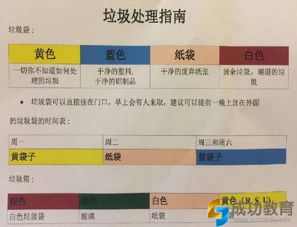 12、学校将提前给同学们讲解垃圾分类的方法与实施细则。同时,房东将提供相应的垃圾袋并帮助与检查学生是否按照正常的方法分类垃圾。(垃圾分类是中国教育特别缺失的,我们在下文将详细讲,希望有一天在中国能够看见垃圾分类真正实践起来,我们为这个愿望做知识准备吧。童书妈妈注)