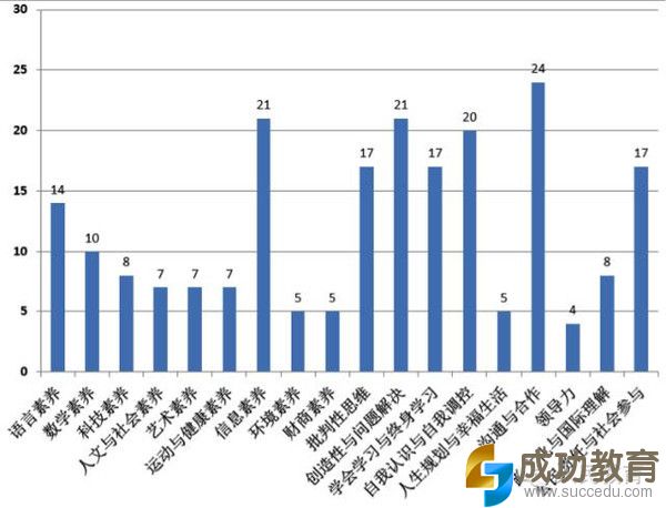 报告也对各素养在不同国际组织和经济体中的分布状况进行了分析,发现:沟通与合作、创造性与问题解决、信息素养、自我认识与自我调控、批判性思维、学会学习与终身学习以及公民责任与社会参与等七大素养为各国际组织和经济体高度重视;同时,财商素养、环境素养、人生规划与幸福生活以及领导力等素养也开始得到关注。