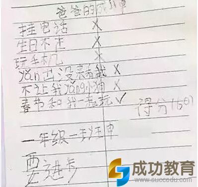 申先生坦言,自己努力工作只是想给女儿更好的生活,现在看来自己错了,女儿最想要的是爸爸的陪伴!单靠一条“春节陪我一起玩”就可以做一个“60分”的合格爸爸,如果自己改正了前几条的话,那“爸爸的成绩单”简直可以超满分了。