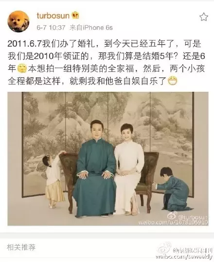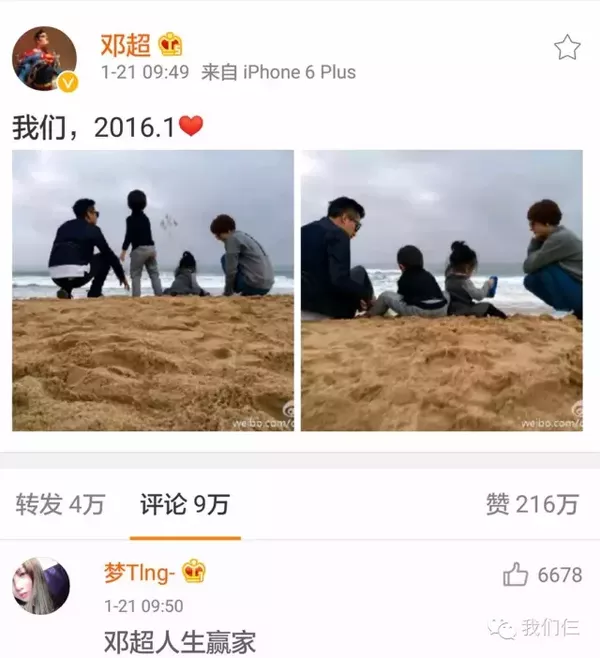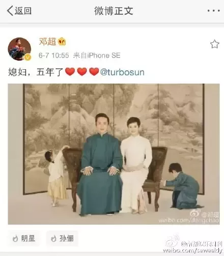 6月7号那天是娘娘和邓超的结婚6周年,他们都晒出了唯美的全家福。