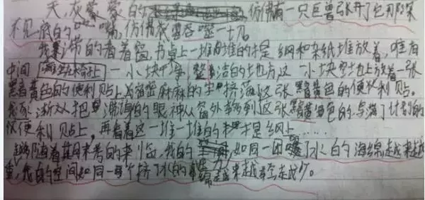再回到文章开头的那名孩子,开始教授作文时,我故意避而不谈作文二字,先从他最近的生活经历开始谈起。起初他还是很警惕地回应着我,放佛看到了一个巨大的阴谋。但随着时间的推移,发现我并没有提到需要作文,就渐渐的放松了起来,谈话氛围也渐渐活跃。脸上又找到了一个13岁的少年应有的生气。谈话持续了约一个半小时,到最后我对他说:“我觉得你刚刚讲的那件事特别酷,你能不能把它记下来,方便以后跟你的小伙伴们分享。”他对我的图穷匕见明显表示不悦,但又碍于我刚刚跟他建立的那份友谊,一番煎熬后写下了这段文字: