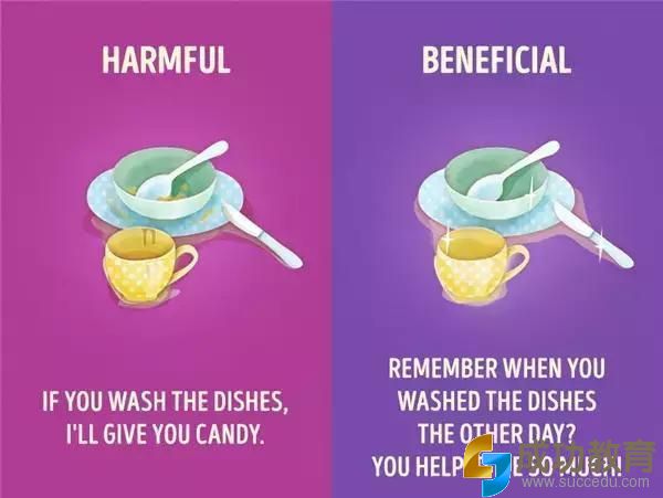 千万不要说:你洗完了这些餐具,我就给你糖果吃!