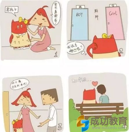 孩子说出自己的困惑后,妈妈给他的答案是:以后你去女厕所就是了。