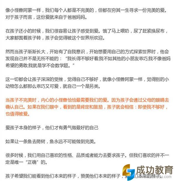 就算孩子真的有很多事情都做不好,也希望得到的是爱和鼓励,这才是他们坚持与进步的动力。小怪兽阿蒙最终找到了不会嫌弃他的人,这就像孩子在父母面前,被允许做真实的自己。这种“允许”背后的爱,会给他勇气,最终成就自己。
