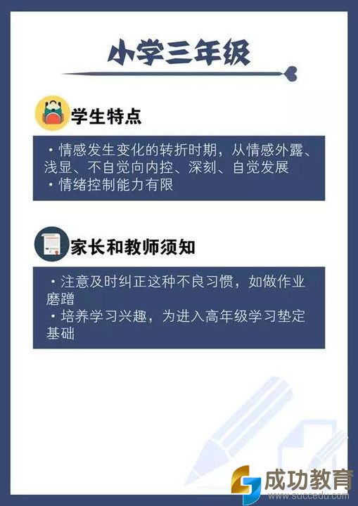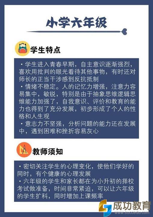 孩子一年年在长大,学生的特点每年都在变化,教育的方法自然也不能墨守成规,想起来是不是头就大了?今天小编就来送上福利,几张图带你了解从小学到初三孩子各个阶段的性格特点,更奉上家长老师教育攻略,快来get新技能!