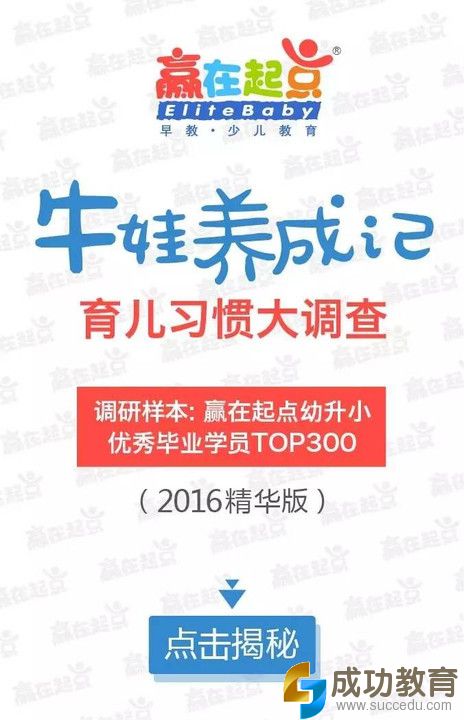中国第一份“牛娃育儿习惯”调查报告再版更新了!能力培养可以选择信赖的早教机构,“让专业的人做专业的事”,但育儿习惯这块却相对空白,既不是早教机构能够包办,也不是理论书籍能够解决,更无法从祖父辈那里继承遗传...本报告为赢在起点所做的调查,分享给大家。