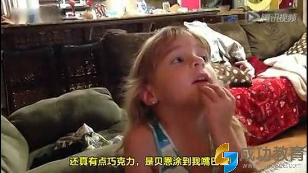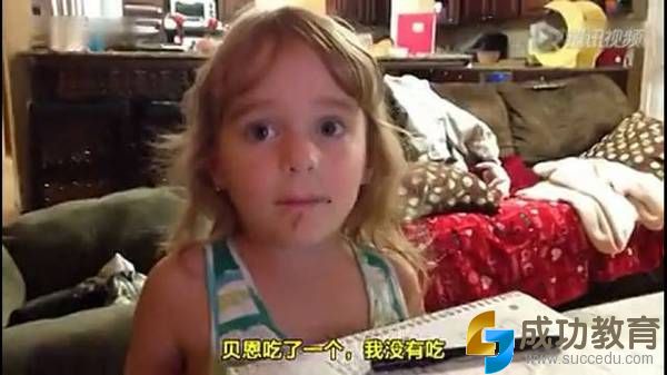 妈妈发现巧克力甜甜圈不见了。于是,问嘴角还留着巧克力渍的姐姐:“你有吃甜甜圈吗?”