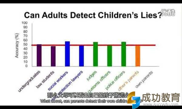 这是各行业的成人分辨孩子撒谎情况的正确率统计,基本都在50%附近徘徊,也就是说,和瞎猜没什么两样。