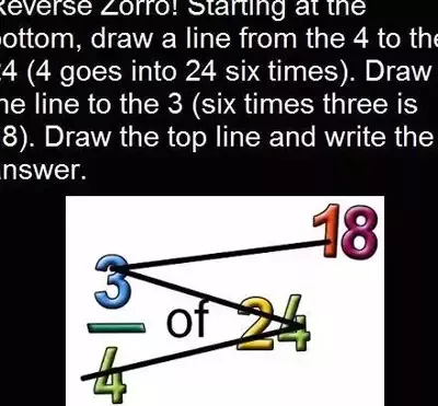 如图:把分母和整数间连一条线,算出24是4的6倍,然后再把线连到分子3,用6乘以3,答案18就这么轻松算出来。
