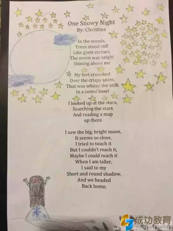 再感受下多多自己创作、翻译、并配图的英文诗吧,这水准绝对是学霸的级别。