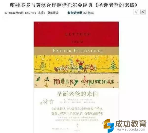 小学二年级时,黄多多还和爸爸联手出了一本翻译作品《圣诞老爸的来信》......