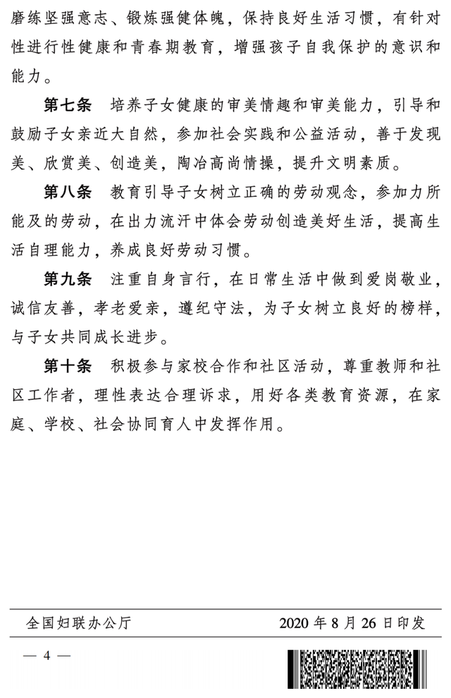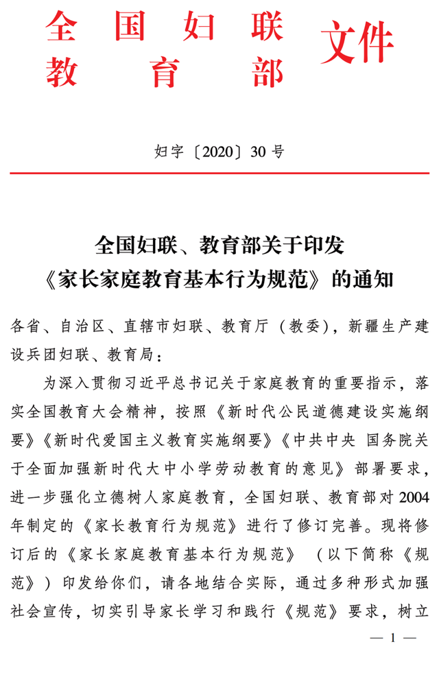 近日,全国妇联、教育部下发《关于印发〈家长家庭教育基本行为规范〉的通知》,对 2004 年制定的 《家长教育行为规范》 进行了修订完善。正值开学季,家长朋友们,一起来对照学习吧!
