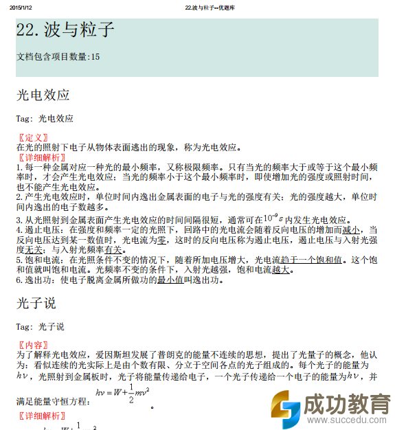 每章有知识结构图,并从概念、特点、公式、分类、实例及注意事项等多方面入手描述各个知识点。 每章是一个PDF文档(22章总计有22个PDF文档),文档首页截图如下(文档众多、不一一截图):