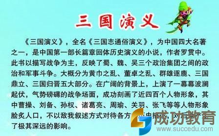 3、《三国演义》中智者的化身当属军师(诸葛亮),他未出茅庐,便知天下三分之事,书中记叙了有关他的许多脍炙人口的事迹,如(火烧赤壁、七擒孟获、六出祁山、空城计、挥泪斩马谡)。