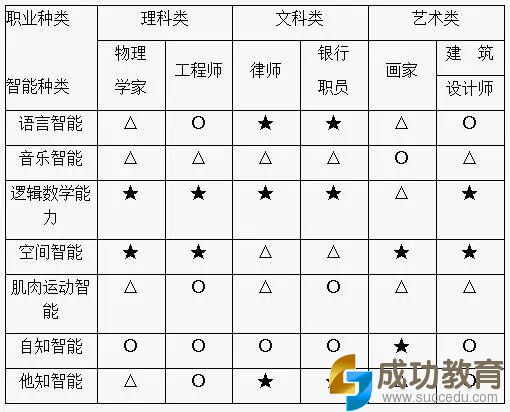最新心理学研究成果表明,人的多重智能,可以分为七大类,每个人的多重智能存在着不均衡的发展,而不同的职业对多重智能的要求也不尽相同。具体如下: