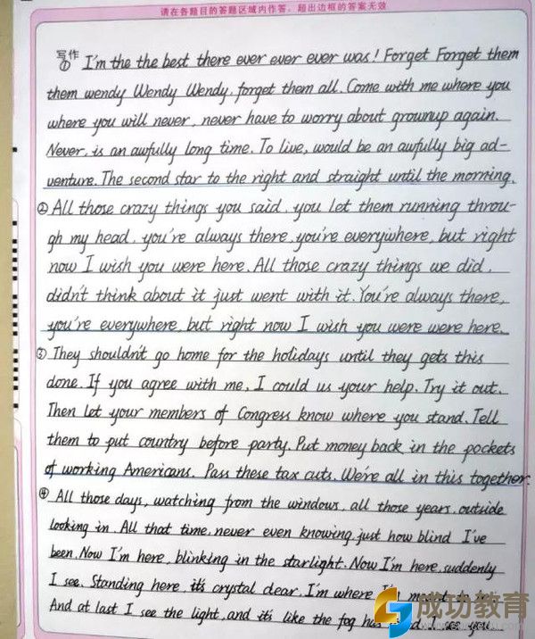 由此看来,整洁的卷面和漂亮的书写是不容忽视的高分因素之一。