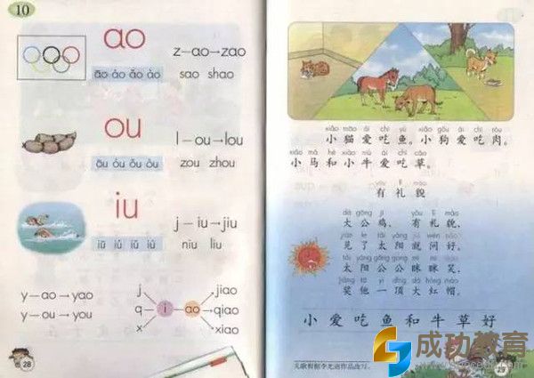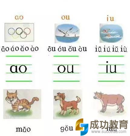 (1)标调:见到a母莫放过,没有a母找o、e, i、u并列标在后,i上标调把点抹。