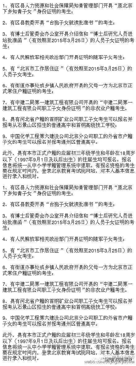 非京籍小升初家长知道吗?2015年9类无户籍考生中考报考办法