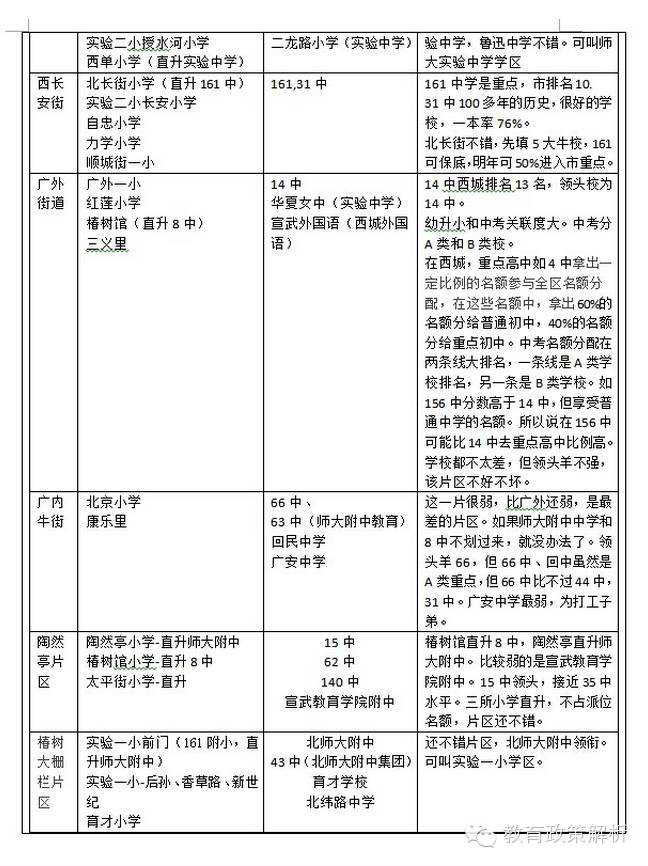 2015年幼升小参考:2014年北京西城区幼升小入学划片信息汇总