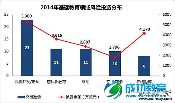 2014年在线教育行业风险投资覆盖全球23个国家和地区。其中,美国市场投资交易116起,占总交易数量的40%;披露交易额10亿美元,占总交易额的54%。其余交易分别来自:中国86起,交易额4.8亿美元;印度35起,交易额4249万美元;英国18起,交易额6131万美元。