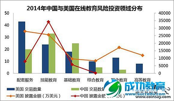 3.教育配套、基础教育、技能教育三个领域是风险资本的投资重点。值得关注的是:整个行业的投资开始向上游延伸,为在线教育提供配套服务的技术型企业引资能力显著增强。美国市场是该领域发展水平最高的区域,中国市场在这方面差距较大。