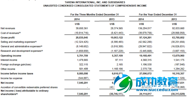2014财年学生注册总数为59960人,同比增长29.1%。
