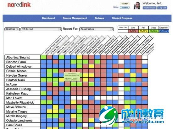 NoRedInk是用来创建测验题和教学生学习语法技能的Web应用,简言之就是–学生来平台答题,教师可以通过应用分析学生近期学习动态。创始人杰夫·夏弗(JeffScheur)是一位高中英语教师。在教学期间,杰夫发现。学生对于枯燥的语法学习的兴趣普遍不高,并且很难用一种新颖的方式让学生轻松掌握语法,基于此,杰夫开始探索是否有一种应用可以改变现状。