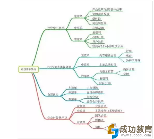 我用思维导图将微信订阅号与服务号各自扮演的角色进行了分类,所有企业的决策者都应该可以对号入座: