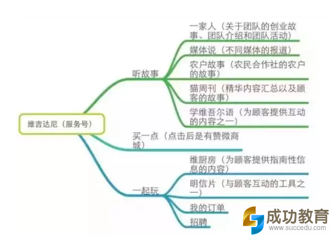 以农业电商“维吉达尼”为例,维吉达尼的创始人曾经是深圳晶报公益周刊的主编刘敬文,他在新疆建立农民合作社,将新疆的干果等优质食品整合到一起,通过搭建淘宝与微信服务号进行售卖,每年销售额上千万。而连接用户与农户的,就是农户故事、讲顾客的故事(猫周刊)、明信片(互动工具)、维厨房(教你怎么吃的指南性信息)。