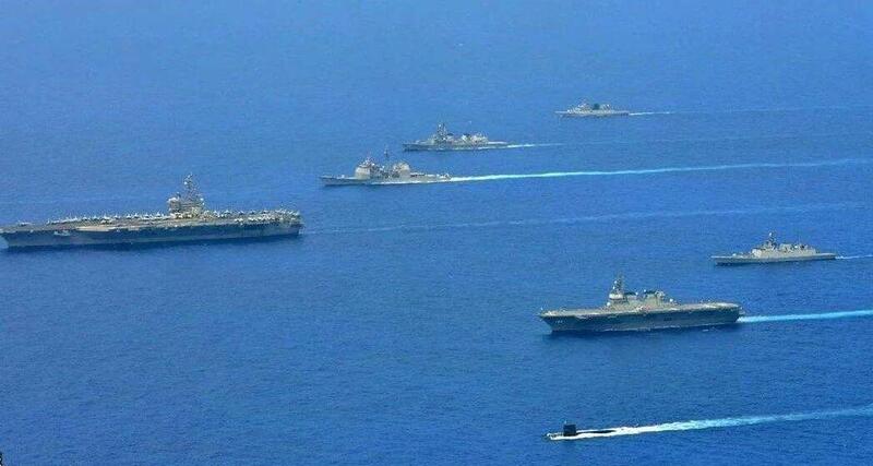 由印度、美国和日本三国海军参与的2018年度“马拉巴尔”海上联合军事演习(资料图)