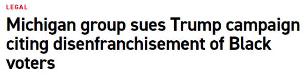 特朗普欲在密歇根州“翻盘”,反遭非裔选民起诉