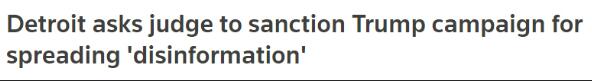 特朗普团队19日撤销了在密歇根州的选举诉讼,底特律市随即反诉特朗普阵营通过诉讼散布“假消息”截图:路透社