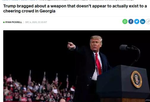 《商业内幕》网站报道截图标题称特朗普“吹嘘一种不曾存在过的武器”