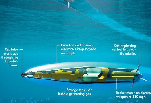 当前美军潜艇装备的MK-48型重型鱼雷航速一般在60节以下(111公里每小时),但苏联曾经研发过利用超空泡技术降低航行阻力,能在水中以极高速度航行的高速鱼雷,速度可以达到200节(约360公里每小时)。美国也大量测试过水下超空泡技术,美国此前曾经测试过水中速度超过1500米每秒的水下超音速载具。