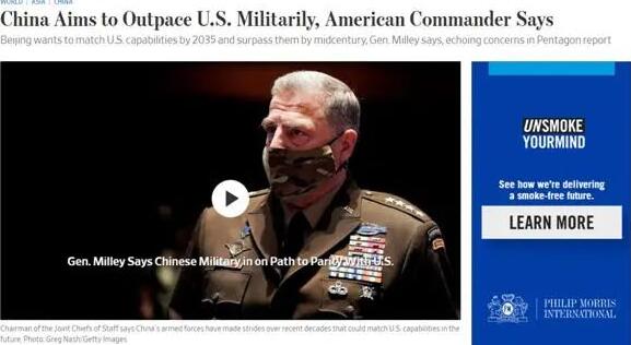 报道还提到,米利的“担忧”也在今年五角大楼一份关于中国军力的年度报告。在这份于9月份发布的报告中,美国官员称中国可能在未来10年将其拥有的核武器数量增加一倍。就在数天前12月4日的美国海军学院的国防论坛华盛顿在线研讨会上,马克·米利就曾发表类似的言论。