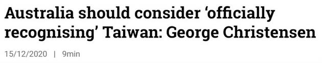 在讨论莫里森政府要如何应对时,克里斯滕森动起了歪脑筋,妄图借机打“台湾牌”。他声称,澳大利亚政府应该通过所有的贸易和外交途径来结束与中国之间的持续贸易争端,其中包括考虑“正式承认”(officiallyrecognising)台湾。