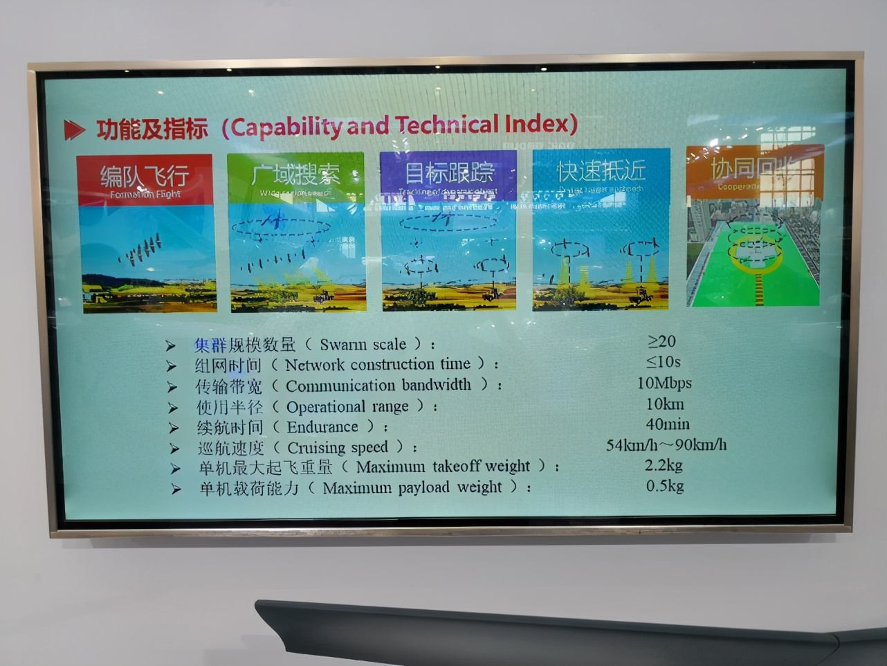 [笔者在2018珠海航展上拍摄的电科集团的集群侦察无人机指标]