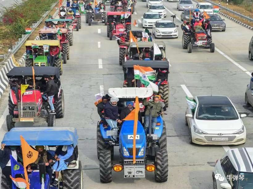 叠罗汉是主动取消了,但印度官员始料未及的,他们看到了一个新增的节目——拖拉机上街。