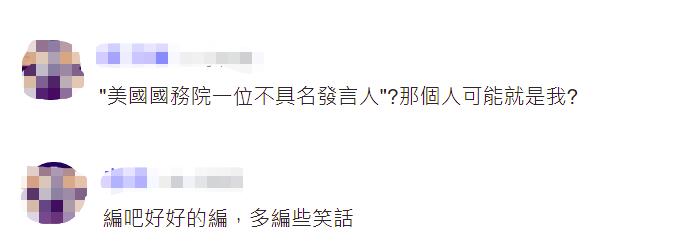 对于台媒炒作美国国务院一位不具名发言人声称支持台湾的话,有岛内网友讽刺民进党当局说,“不是说与美国关系非常密切吗?美国也只是出张嘴罢了,民进党继续骗啦!”↓