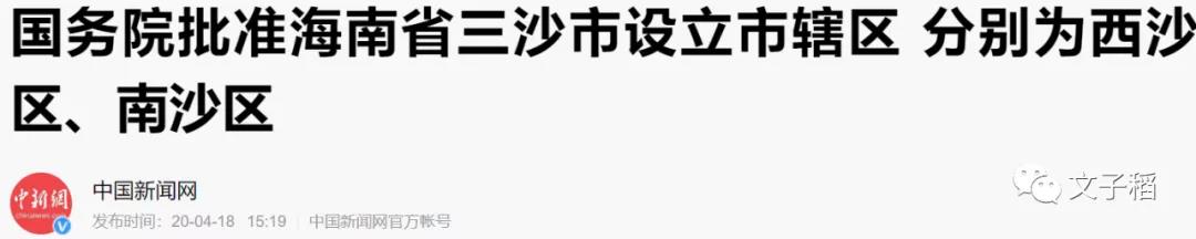 直到2020年4月18日,国务院批准在海南省三沙市设立了西沙区和南沙区,这也是三沙市首次设区。